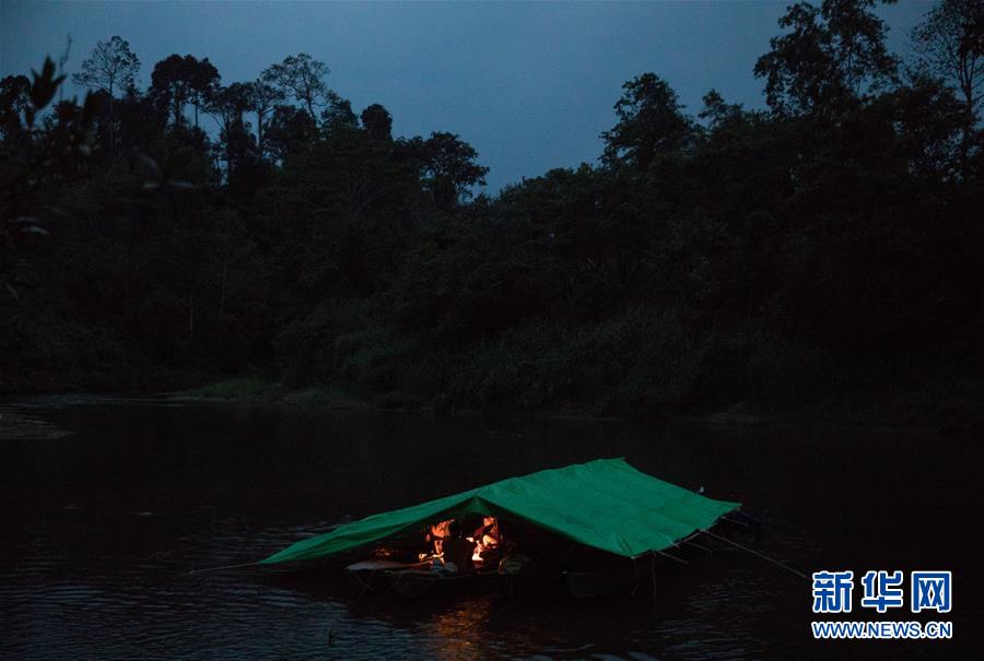 在缅甸北部实皆省,很多居民傍水而居,与自然和谐相处,依然保持着传统的生活方式。 这是在缅甸北部实皆省的大麦地野生动物保护区钦敦江支流上,船夫在河床上搭建的帐篷下休息(5月31日摄)。 新华社记者金立旺摄