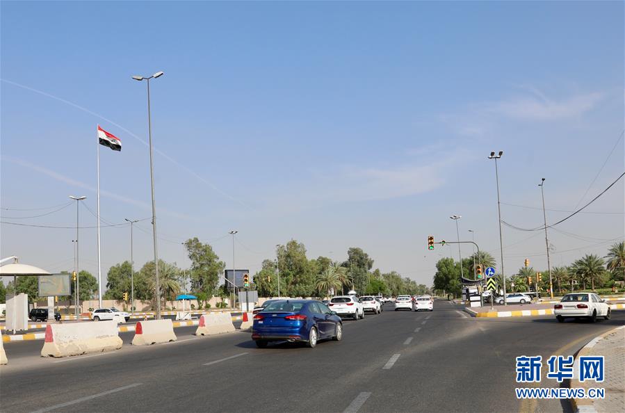 6月4日,在伊拉克首都巴格达,车辆经过“绿区”内的一处十字路口。新华社发(哈利勒·达伍德摄)