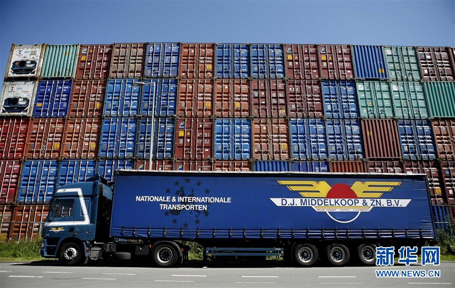 世界银行6月4日发布最新一期《全球经济展望》报告,再次下调今明两年全球经济增长预期,并警告全球经济面临重大下行风险,易受到贸易紧张局势和金融动荡影响。 这张2009年6月2日拍摄的资料照片显示的是一辆货车停在荷兰鹿特丹港的集装箱旁。 新华社发