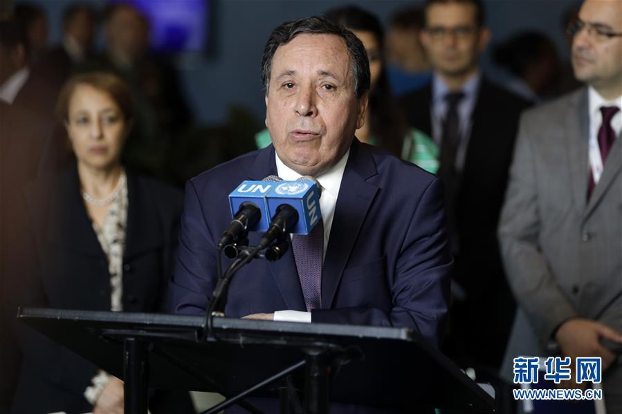 6月7日,在位于纽约的联合国总部,突尼斯外长杰希纳维在突尼斯当选2020年和2021年安理会非常任理事国后会见媒体。 联合国大会7日选举爱沙尼亚、尼日尔、圣文森特和格林纳丁斯、突尼斯和越南5国为2020年和2021年安理会非常任理事国。 新华社记者 李木子 摄