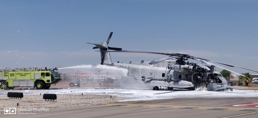 近日,美国海军航空兵第3飞行联队第465重型直升机中队的一架CH-53E超种马重型直升机起火,随后在加利福尼亚州的一个机场紧急降落后,火势被地面消防队扑灭。据称此次事故并未造成人员伤亡。