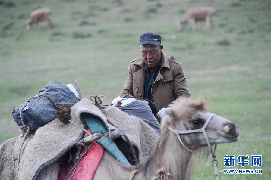 清晨,新疆阿勒泰地区福海县牧民收拾行李准备转场(6月6日摄)。 眼下,随着新疆多地夏季牧场开放,阿勒泰地区的哈萨克族牧民又迎来了转场季,他们赶牛羊,逐水草,游走在阿尔泰山间的牧道上,形成一道流动的风景。 转场时,牧民们携子女及亲属骑马赶着牲畜徐徐前行,驼队或马队驮着全部家当,走到哪里,晚上就宿营在哪里。与传统转场方式不同,随着生活条件的改善,一些牧民会雇汽车将家中的大件物品提前运送到目的地,转场途中只需准备食物和简易毡房便可以轻装前行…… 新华社记者 丁磊 摄