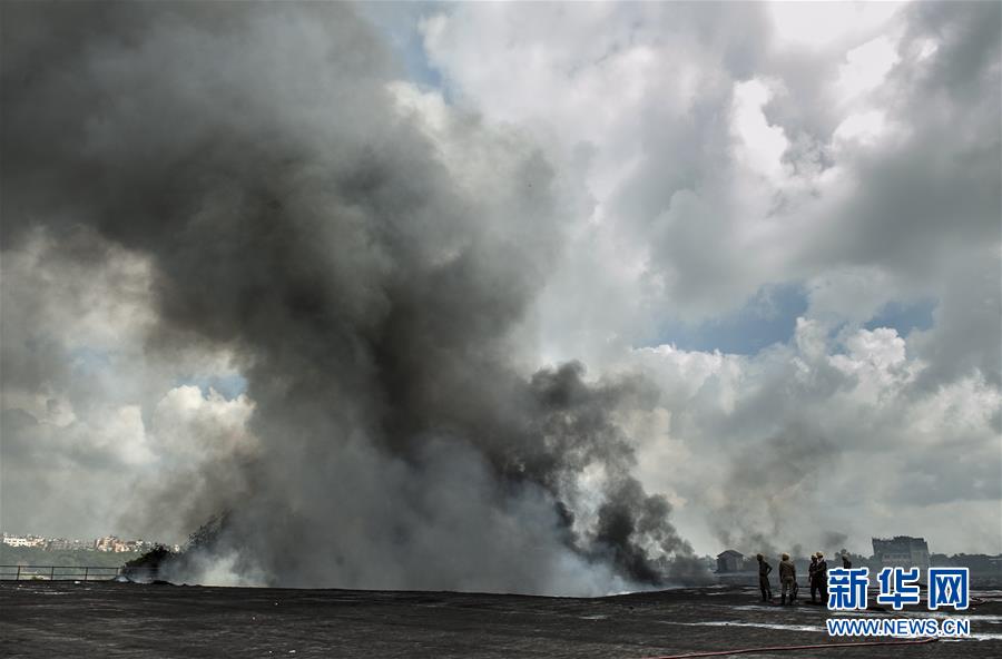 6月8日,在印度加尔各答市,火灾现场冒出滚滚浓烟。 当日,印度加尔各答市一处化学品储存地点发生火灾,附近居民已撤离。 新华社发(通帕·蒙达尔摄)