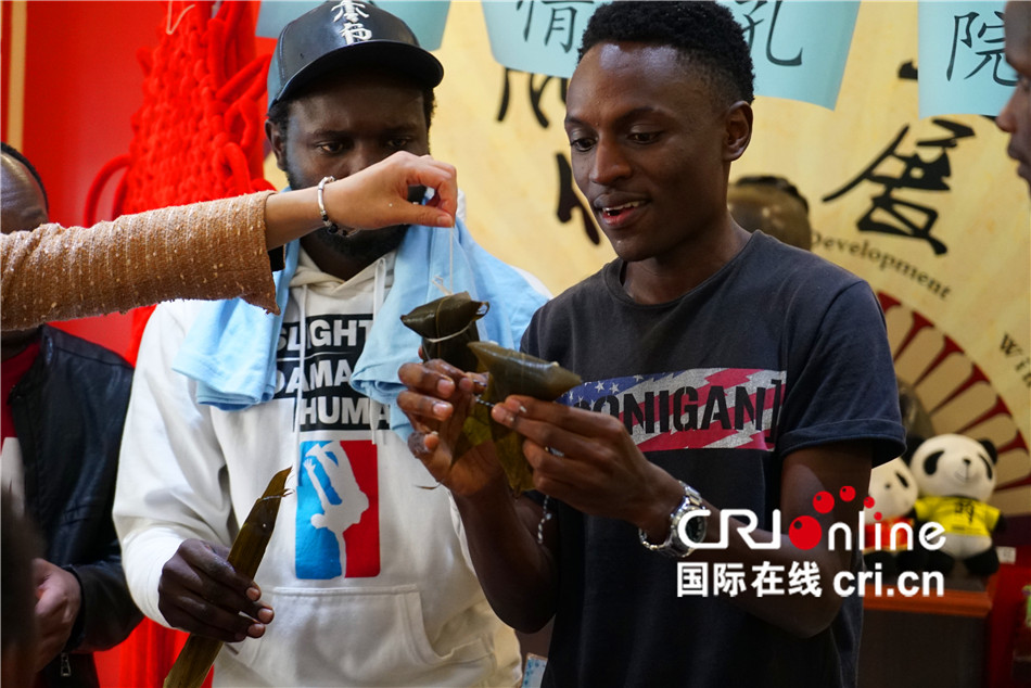 肯尼亚学生在学习包粽子 摄影:杨琼