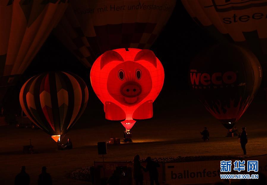 这是6月8日在德国波恩热气球节上拍摄的一场热气球点火表演。