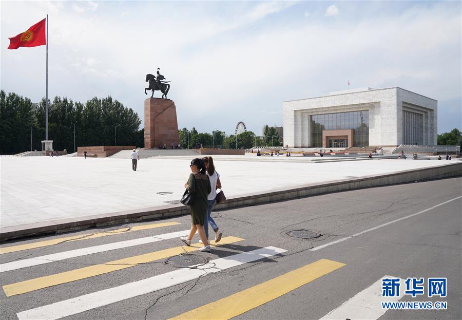 这是6月9日在吉尔吉斯斯坦首都比什凯克拍摄的阿拉套广场。 新华社记者 毕晓洋 摄