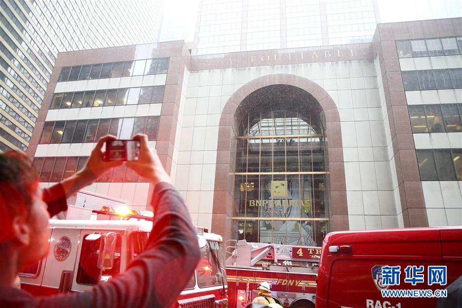 6月10日,在美国纽约曼哈顿,一名记者拍摄事发写字楼。 当日下午,一架直升机在纽约曼哈顿中城一座大厦楼顶坠毁,飞行员丧生。坠机事故发生在美国东部时间10日下午1时45分左右,当时纽约正在下雨,雾气很大。一架直升机在曼哈顿第七大道一座大厦楼顶坠毁并起火,但火势很快得到控制。 新华社记者王迎摄