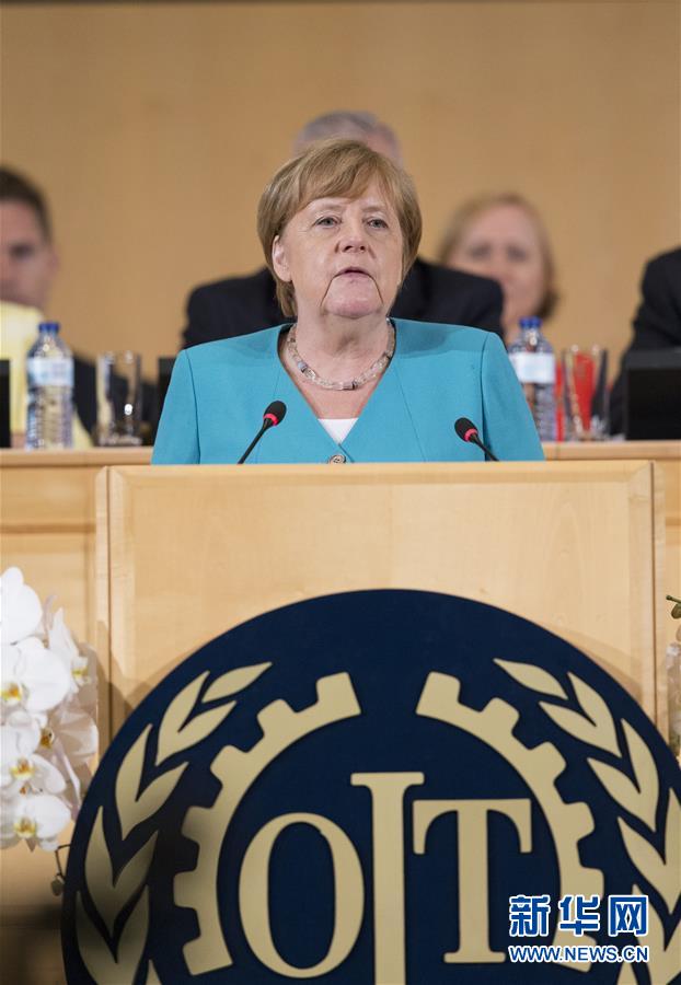 6月11日,在瑞士日内瓦,德国总理默克尔出席国际劳工大会并发表讲话。 德国总理默克尔11日在瑞士日内瓦表示,当前多边主义面临危机,应通过寻求妥协折中让事态取得进展。 新华社记者 徐金泉 摄
