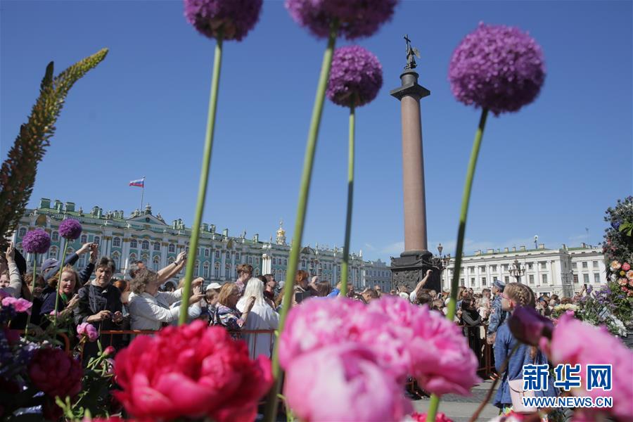 圣彼得堡举办鲜花游行庆祝“俄罗斯日”