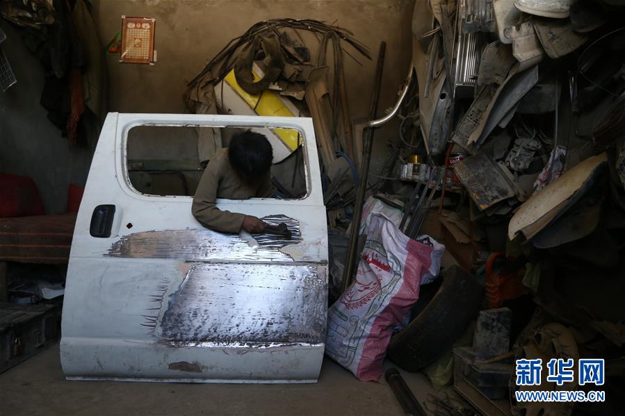 6月12日,在阿富汗东部加兹尼省,一名儿童在修车铺里工作。 童工现象由来已久,目前全球范围内童工问题依然严峻。贫困和连年战乱给阿富汗带来巨大伤害,大批儿童和少年成为童工。 新华社发(赛义德·莫明扎达 摄)
