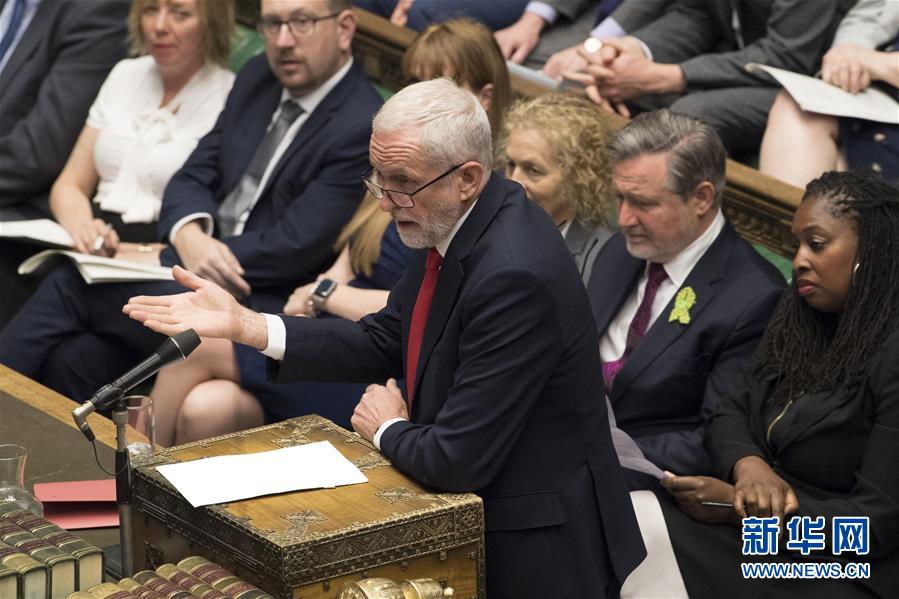 6月12日,在英国伦敦,英国工党领袖科尔宾(前)参加在议会下院进行的首相问答。 新华社发(英国议会摄影师马克·达菲摄)