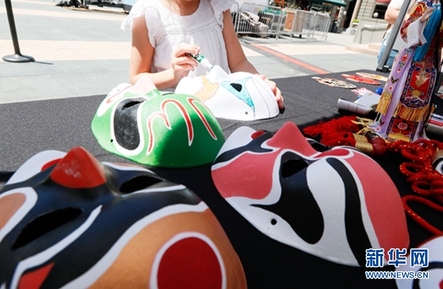 6月12日,一位当地小朋友在现场老师的指导下进行面具绘制。陈向俞 摄