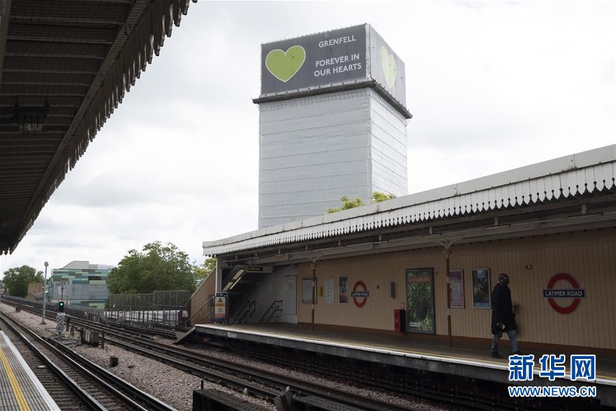 这是6月14日在英国伦敦拍摄的格伦费尔大楼。 当天是格伦费尔大火两周年纪念日。2017年6月14日凌晨,位于伦敦肯辛顿区的格伦费尔大楼四层一间公寓厨房的冰箱起火。由于楼外墙面使用了易燃材料,大火迅速蔓延并吞噬这栋24层高的居民楼,酿成英国自第二次世界大战以来最严重的一场火灾——72人丧生,上百户家庭无家可归。 新华社发(雷伊·唐 摄)