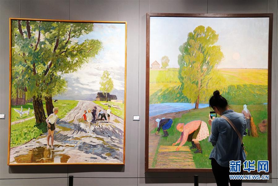 6月16日,在哈尔滨国际油画展上,参观者在拍摄展出的油画作品。 6月15日,作为第六届中俄博览会的重要文化项目,为期5天的“暖——我的心靠近你就有光明”第七届中国·哈尔滨国际油画展在哈尔滨国际会展中心开幕。展览展出了来自俄罗斯、中国、朝鲜等国家的油画、雕塑等各类艺术品千余件,吸引了众多参观者前来品鉴观赏。 新华社记者 王建威 摄