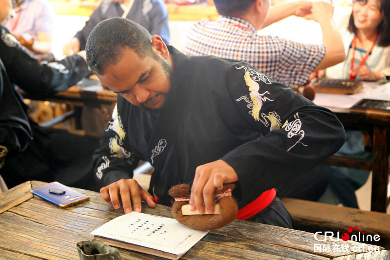 来自苏丹的哈森在开封清明上河园学习活版印刷术 摄影 丁旭