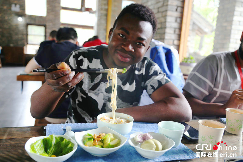 来自贝宁的留学生欧拉在登封杨家门村吃特色美食 摄影 丁旭