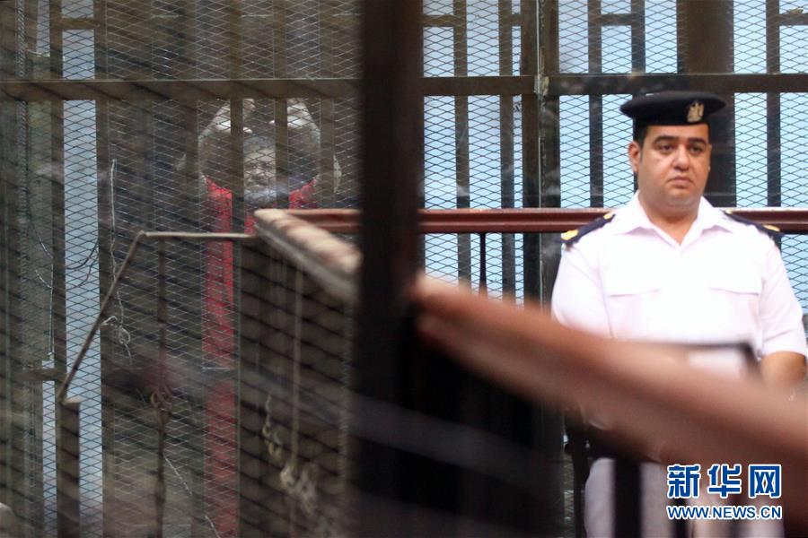这是埃及前总统穆尔西(左)在开罗一法庭接受庭审的资料照片(2016年6月18日摄)。 新华社发(艾哈迈德·戈马摄)