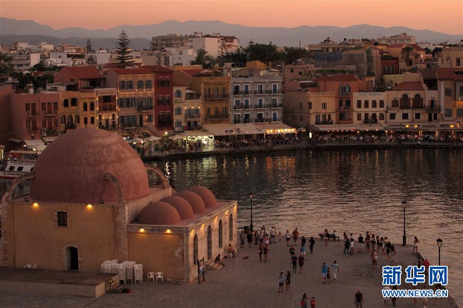 这是6月17日拍摄的希腊克里特岛干尼亚港口。 干尼亚是希腊克里特岛西北岸港口城市,拥有丰富的历史遗产和优美的自然风光。 新华社发(马里奥斯·罗洛斯摄)