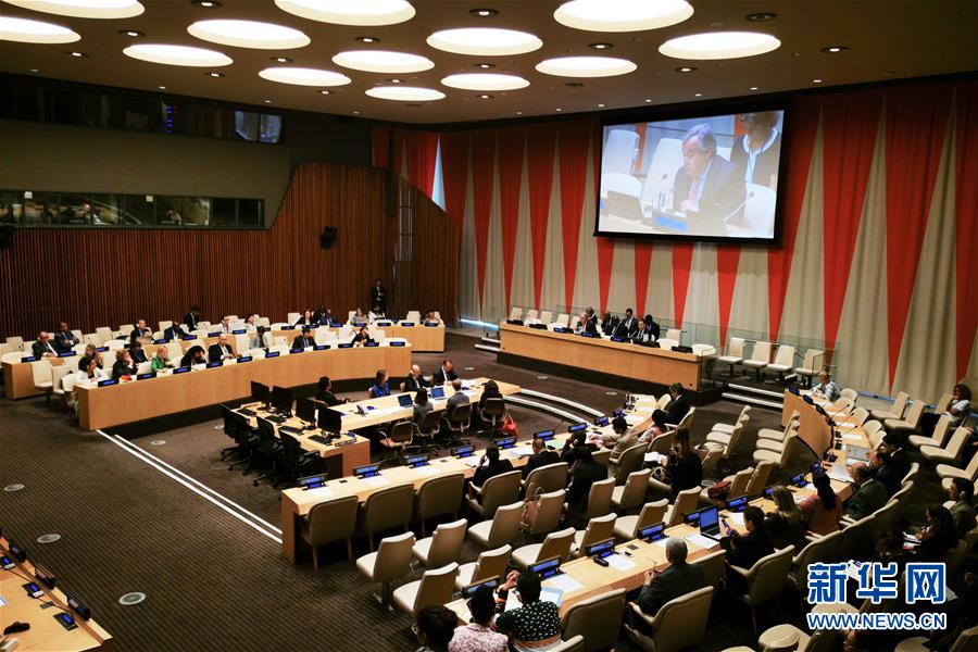 这是6月18日在位于纽约的联合国总部拍摄的联合国秘书长古特雷斯发表讲话的会场。联合国秘书长古特雷斯18日宣布启动一项打击仇恨言论的行动计划。古特雷斯说,该行动计划将协调联合国各机构,加强联合国与私营部门、民间团体和媒体的合作,使用多种方法识别、预防和打击仇恨言论。新华社记者李木子摄