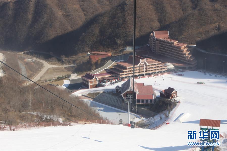 这是从朝鲜马息岭滑雪场的索道缆车上俯瞰滑雪场(2019年2月23日摄)。新华社记者程大雨摄