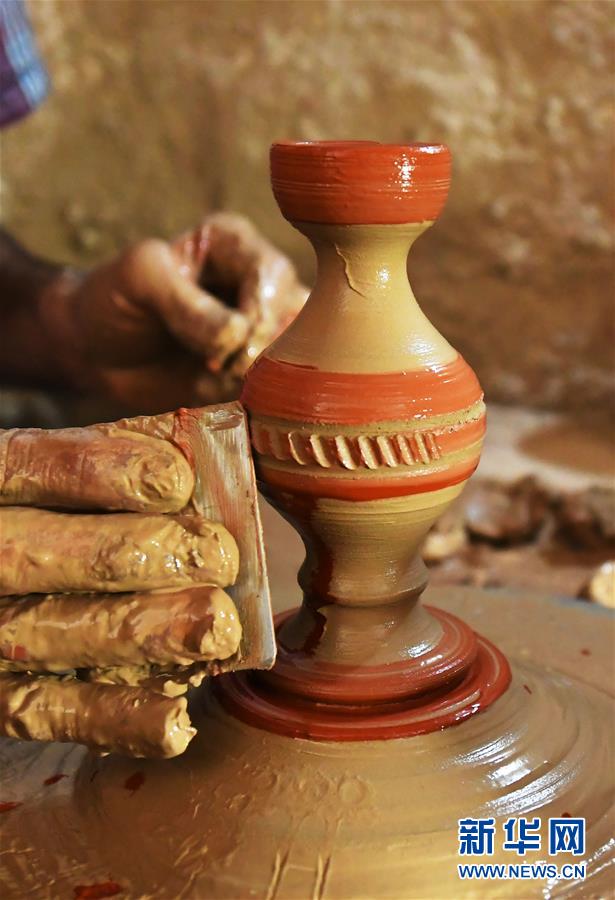6月5日,在叙利亚霍姆斯,扎卡莱亚·卡尔库什在作坊内制作陶器。