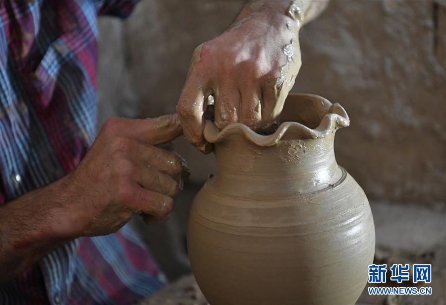 6月5日,在叙利亚霍姆斯,扎卡莱亚·卡尔库什在作坊内制作陶器。 新华社发(阿马尔摄)