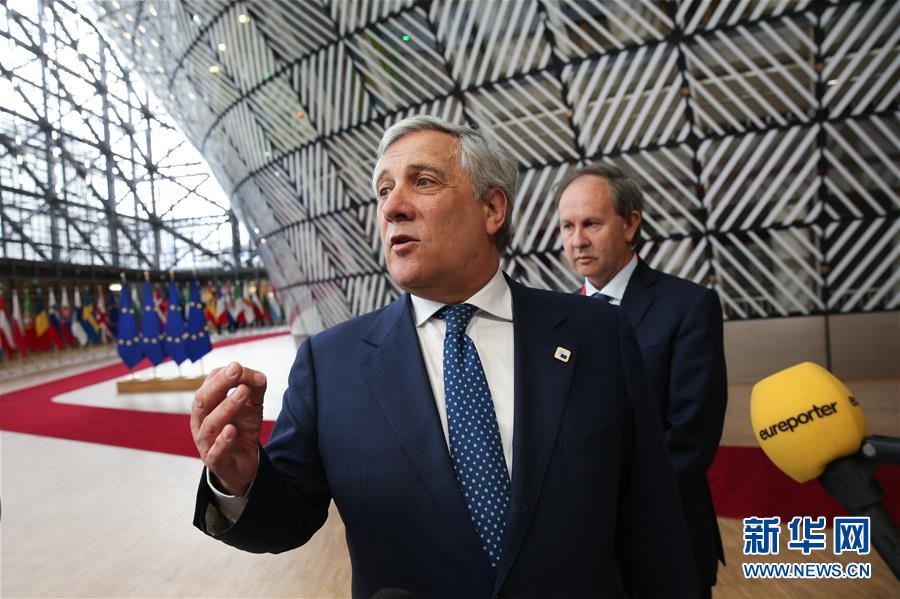 6月20日,欧洲议会议长塔亚尼(前)抵达位于比利时布鲁塞尔的欧盟总部,准备出席欧盟夏季峰会。 当日,为期两天的欧盟夏季峰会在比利时布鲁塞尔开幕。 新华社记者张铖摄