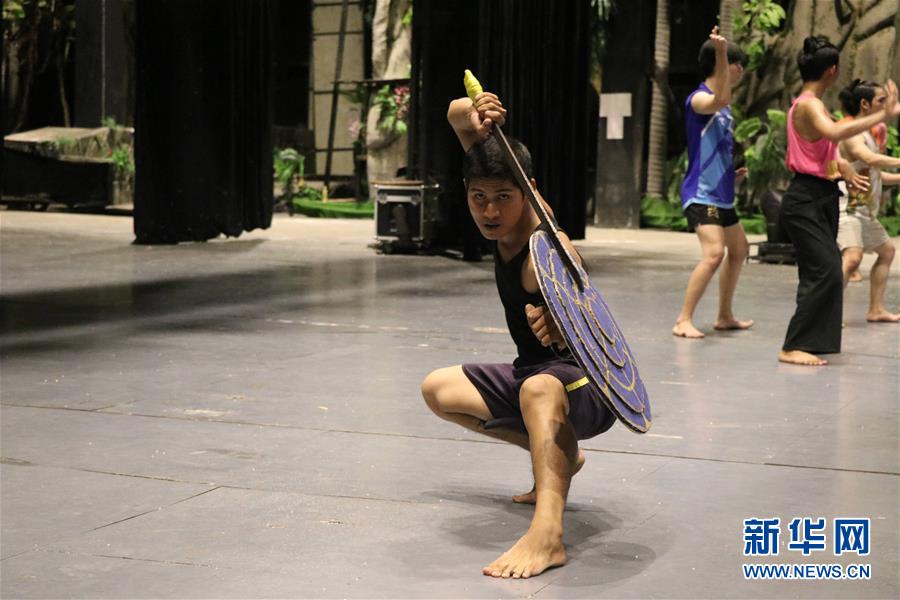 6月11日,在柬埔寨暹粒,孙塞贴农在演出前进行排练。 新华社记者毛鹏飞摄