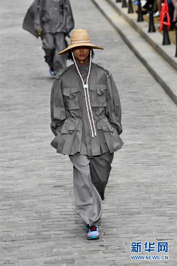 6月20日,模特在法国巴黎男装周上展示路易威登品牌2020春夏新品男装。 新华社发(皮耶罗·比亚西翁摄)