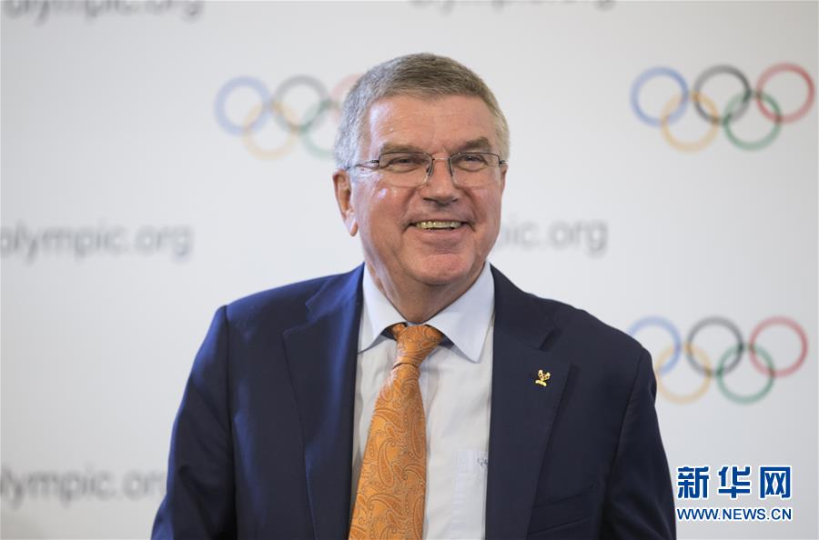 6月20日,在瑞士洛桑,国际奥委会主席巴赫出席新闻发布会。 国际奥委会主席巴赫20日在洛桑举行的一个新闻发布会上对2022年冬奥会的准备工作大加赞赏,称一切进展有序,没有任何可以担心的地方。 新华社记者 徐金泉 摄