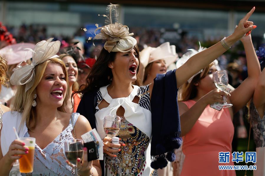 6月20日,在英国阿斯科特,女士们头戴礼帽观看皇家阿斯科特赛马会。 当日是英国皇家阿斯科特赛马会“女士日”。在这一天,女士们会戴上各式各样的华丽礼帽观看赛马。 新华社发(蒂姆·爱尔兰摄)