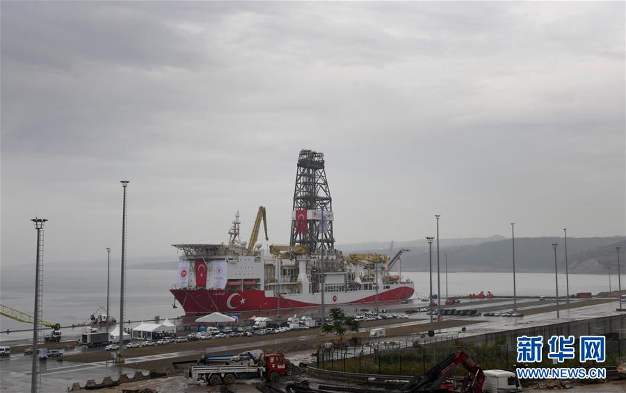 这是6月20日拍摄的停泊在土耳其西北部科贾埃利省一港口的“亚武兹”号钻探船。土耳其20日向地中海东部派遣第二艘油气钻探船“亚武兹”号。分析人士认为,此举可能加剧土耳其与塞浦路斯等欧盟国家的紧张关系。新华社记者 徐速绘 摄