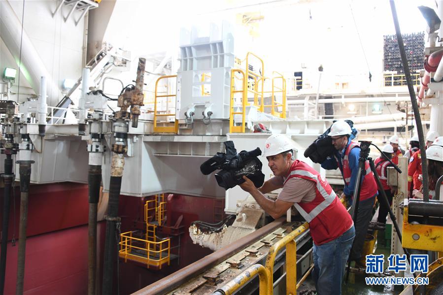 6月20日,在土耳其西北部科贾埃利省一港口,记者在“亚武兹”号钻探船上拍摄采访。土耳其20日向地中海东部派遣第二艘油气钻探船“亚武兹”号。分析人士认为,此举可能加剧土耳其与塞浦路斯等欧盟国家的紧张关系。新华社记者 徐速绘 摄