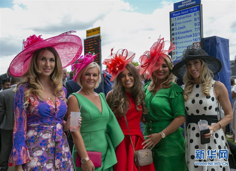 6月21日,在英国阿斯科特,人们盛装出席皇家阿斯科特赛马会。 2019年英国皇家阿斯科特赛马会于6月18日至22日举行。 新华社记者 韩岩 摄