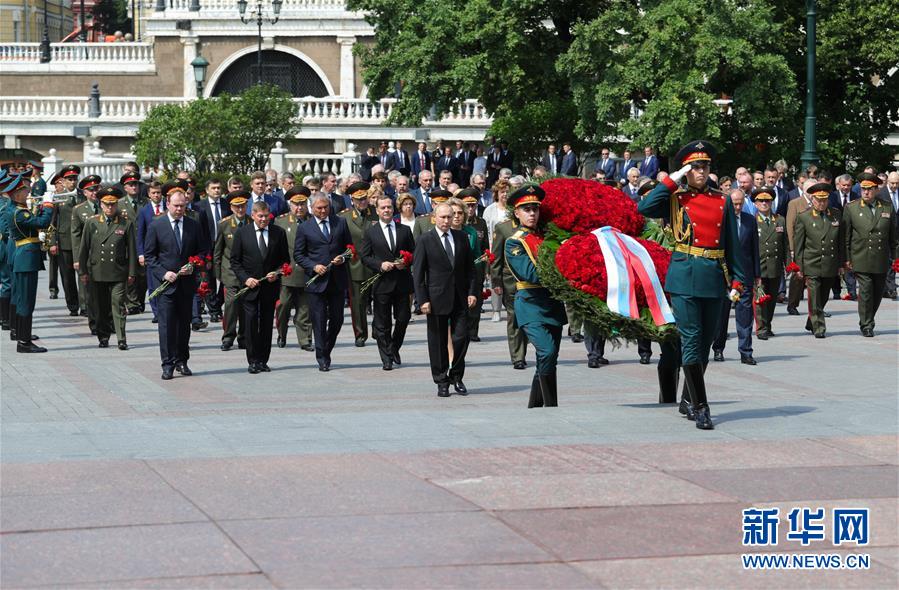 6月22日,在俄罗斯首都莫斯科,俄罗斯总统普京(中)出席卫国战争爆发78周年纪念仪式。 1941年6月22日,德国法西斯撕毁《苏德互不侵犯条约》,悍然入侵苏联,卫国战争随之打响。6月22日这天被俄罗斯政府定为“纪念和哀悼日”。 新华社/卫星社