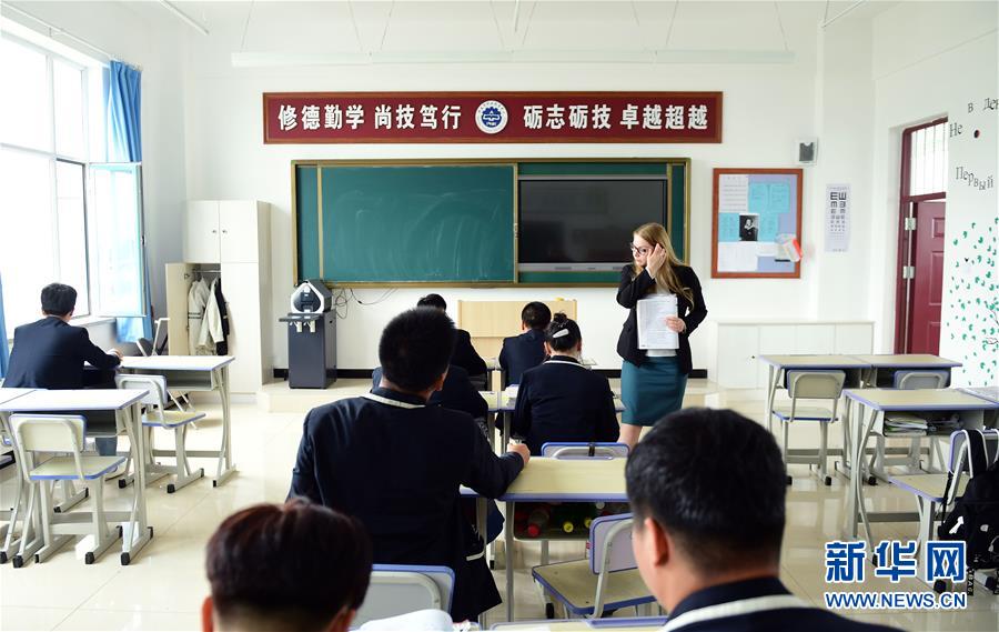 塔尼亚在珲春市职业高中给学生上俄语课(6月23日摄)。 新华社记者 林宏 摄