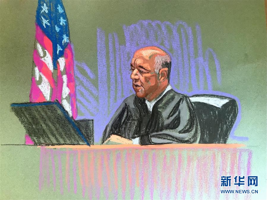 这张6月24日的法庭素描显示的是美国伊利诺伊州中部地区法院法官詹姆斯·沙迪德在位于皮奥里亚的联邦法院出席章莹颖案庭审。 美国伊利诺伊州中部地区联邦法院陪审团24日裁定,布伦特·克里斯滕森2017年绑架和谋杀中国访问学者章莹颖的罪名成立。 新华社发(克里斯蒂娜·康奈尔供图)