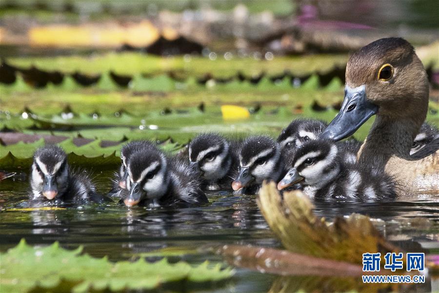 6月27日,刚孵出不久的野生小树鸭在新加坡滨海湾花园亮相。 新华社发(邓智炜 摄)