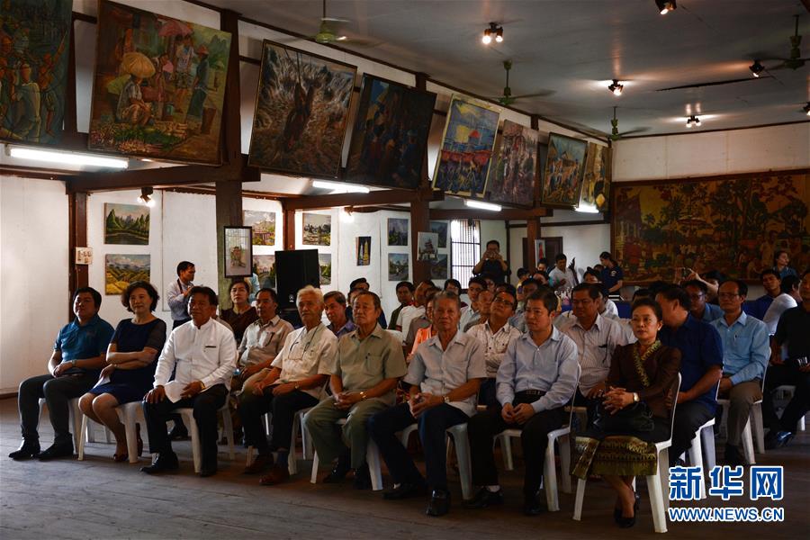 6月28日,在老挝万象,参观者听取“老挝画家赴华创作汇报展”活动介绍。 当日,由老挝中国文化中心和老挝国家美术学院合办的“老挝画家赴华创作汇报展”活动在位于老挝首都万象的国家美术学院开展。 新华社发(波奇 摄)