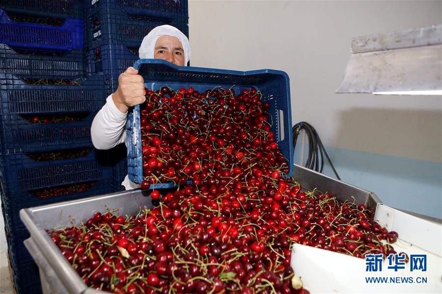 6月27日,在土耳其阿菲永卡拉希萨尔,一名工人展示即将出口中国的樱桃。 土耳其对中国出口樱桃启运仪式27日在土耳其西部阿菲永卡拉希萨尔省举行,参加仪式的两国政府官员和业界人士纷纷表示看好土耳其樱桃在华销售前景。 新华社记者 秦彦洋 摄