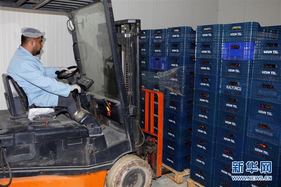 6月27日,在土耳其阿菲永卡拉希萨尔,一名工人搬运即将出口中国的樱桃。 土耳其对中国出口樱桃启运仪式27日在土耳其西部阿菲永卡拉希萨尔省举行,参加仪式的两国政府官员和业界人士纷纷表示看好土耳其樱桃在华销售前景。 新华社记者 秦彦洋 摄