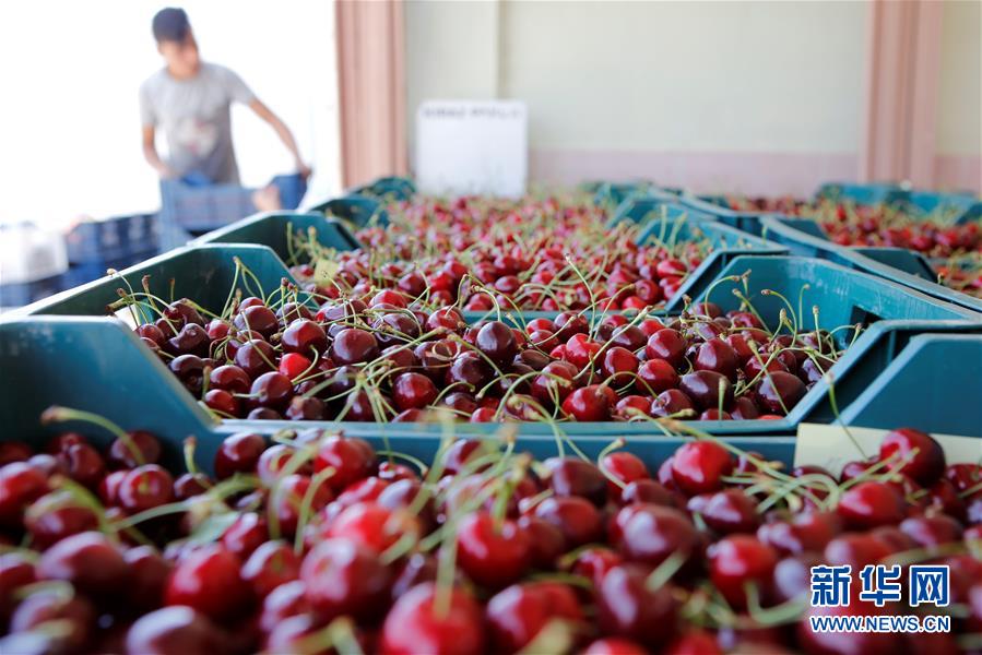 这是6月27日在土耳其阿菲永卡拉希萨尔拍摄的新鲜樱桃。 土耳其对中国出口樱桃启运仪式27日在土耳其西部阿菲永卡拉希萨尔省举行,参加仪式的两国政府官员和业界人士纷纷表示看好土耳其樱桃在华销售前景。 新华社记者 秦彦洋 摄