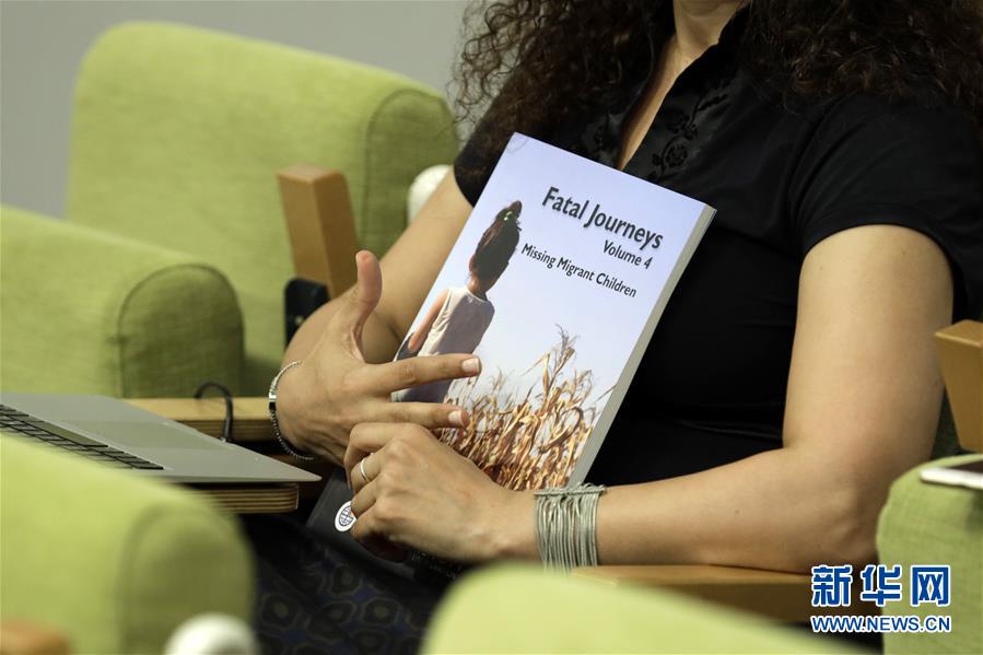 6月28日,在位于纽约的联合国总部,一名记者手捧国际移民组织报告。 国际移民组织28日发布的一份报告显示,2014年至2018年间,被记录的死亡或失踪移民儿童有近1600人。 新华社记者 李木子 摄