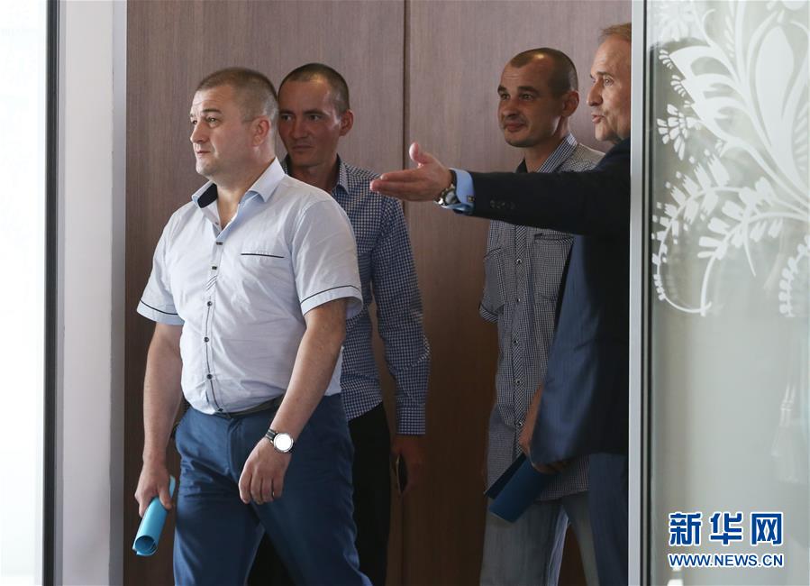 6月28日,被解救的人质抵达乌克兰首都基辅市的基辅国际机场。 乌克兰东部民间武装28日释放4名在押人员,其中包括3名乌克兰军人和1名乌平民。据乌克兰国际文传电讯社报道,获释人员交接仪式当天在白俄罗斯首都明斯克举行,4人随后乘飞机抵达乌克兰首都基辅。 新华社发(谢尔盖摄)