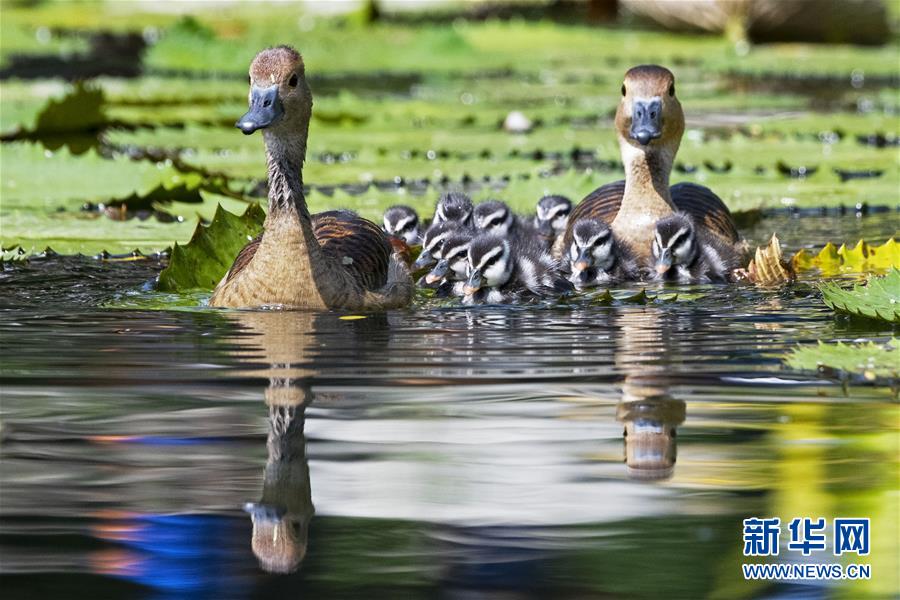 野生小树鸭在新加坡滨海湾花园亮相