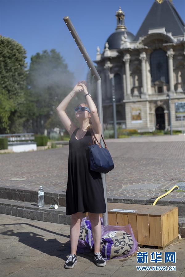 6月28日,在法国北部城市里尔,一名女子在政府临时安装的降温设施处消暑。 法国气象部门当地时间27日下午向南部4个省份发出高温红色预警信号,预计最高气温将达42摄氏度以上。此外,气象部门还向其他76个省份发出高温橙色预警。这些地区的最高气温将普遍保持在34至39摄氏度,中部个别省份的最高气温将达40摄氏度。 新华社发(塞巴斯蒂安·库尔吉摄)