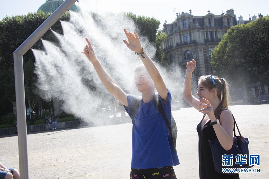 6月28日,在法国北部城市里尔,人们在政府临时安装的降温设施处消暑。 法国气象部门当地时间27日下午向南部4个省份发出高温红色预警信号,预计最高气温将达42摄氏度以上。此外,气象部门还向其他76个省份发出高温橙色预警。这些地区的最高气温将普遍保持在34至39摄氏度,中部个别省份的最高气温将达40摄氏度。 新华社发(塞巴斯蒂安·库尔吉摄)