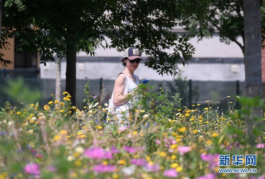 6月29日,在意大利米兰,一名女子从街头的花丛旁走过。新华社发(阿尔贝托·林格里亚摄)