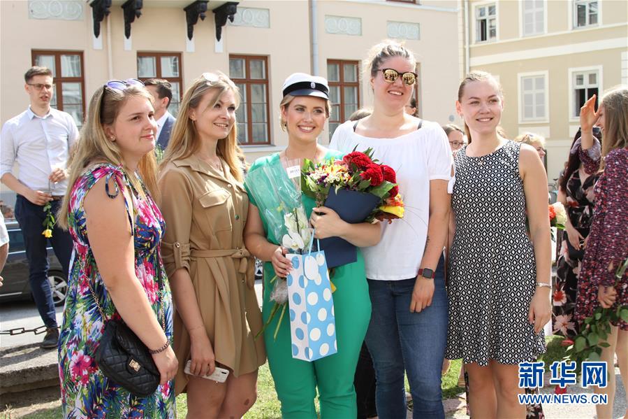 6月21日,在爱沙尼亚东部城市塔尔图,塔尔图大学毕业生在毕业典礼上与亲友庆祝。 新华社记者郭春菊摄