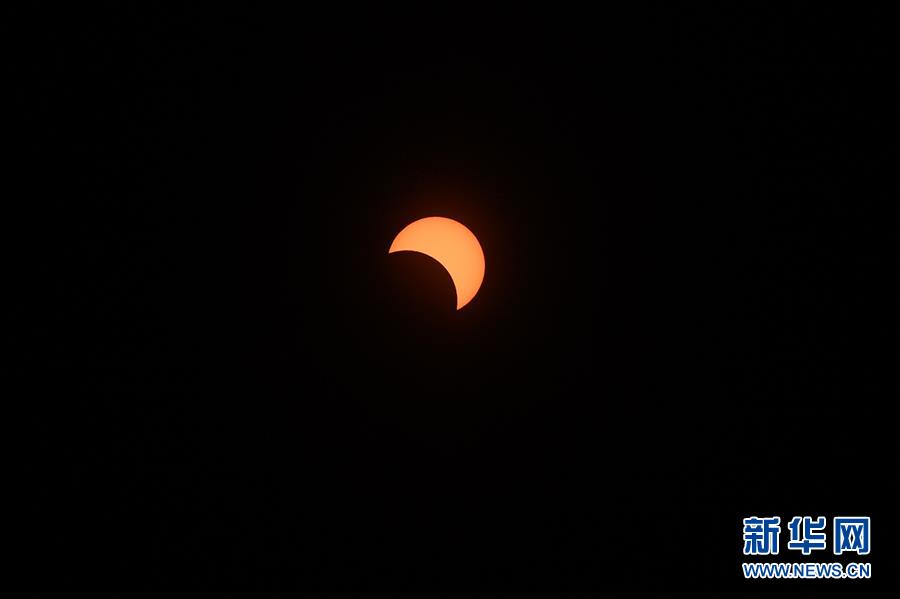 7月2日,智利科金博大区首府拉塞雷纳出现日全食天象,月球开始遮住部分太阳。 智利的科金博大区和阿塔卡玛大区部分地点当地时间2日下午迎来日全食天象。 新华社发(豪尔赫·比列加斯摄)